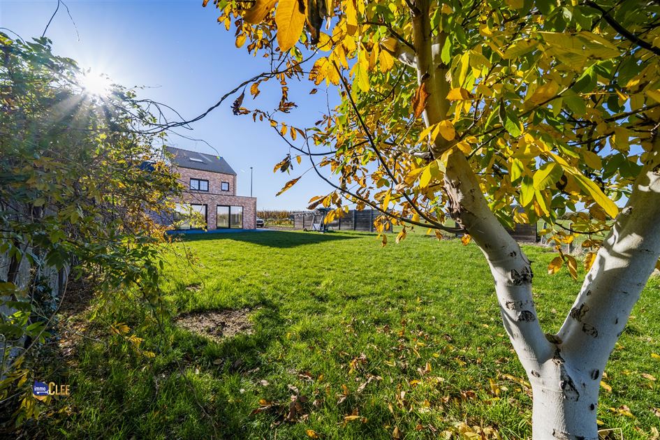 Buiten geniet je van een zonnig terras en een tuin met prachtig uitzicht op omliggende fruitbomen. De oprit biedt plaats aan twee wagens en mits vergunning kan hier eventueel een carport geplaatst worden.