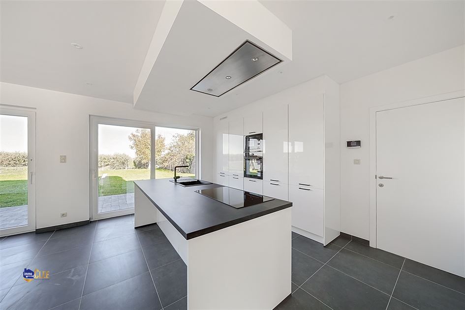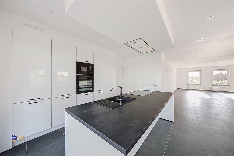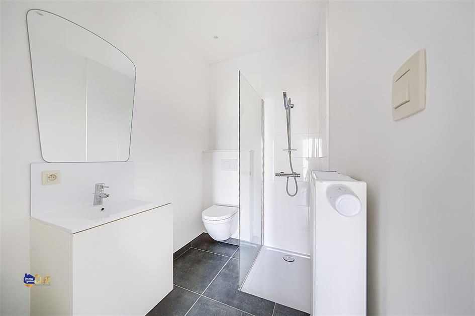 Op het gelijkvloers betreed je de woning via een inkomhal met praktische berging, die perfect kan dienen als vestiaire. De ruime woonkamer vloeit mooi over in de eetruimte en de open, moderne keuken die voorzien is van alle comfort. Aansluitend bevindt zich een grote achterkeuken met aparte wasruimte, een badkamer met douche en een toilet. Op de eerste verdieping treffen we twee volwaardige slaapkamers en een tweede badkamer met dubbele lavabo, douche en toilet. De zolderverdieping is bereikbaar via een vaste trap en volledig ingericht als een derde, bijzonder ruime slaapkamer van 30 m².