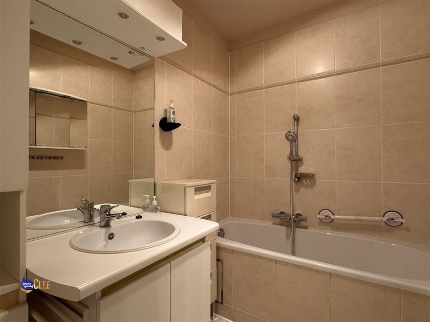 Het appartement bevindt zich op de eerste verdieping van een kleinschalige residentie en biedt een aangename indeling. Via de inkomhal bereik je het gastentoilet en de andere vertrekken. Er is een ruime living voorzien van airco, aansluitend bevindt zich de keuken met eethoek en berging, vanuit de keuken is er toegang tot het overdekte terras, voorzien van een elektrisch rolluik.