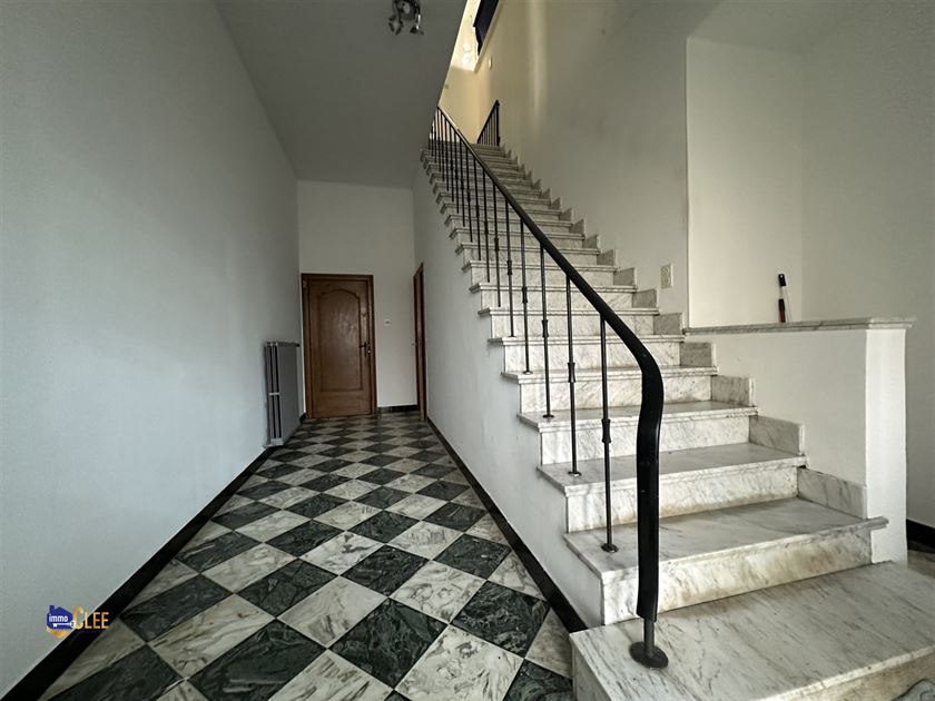 De eerste verdieping omvat een ruim te renoveren appartement met 2 slaapkamers, een lichtrijke leefruimte en een groot terras met uitzicht op het park, een unieke combinatie van wonen in het groen en toch midden in de stad, vlakbij alle faciliteiten.
