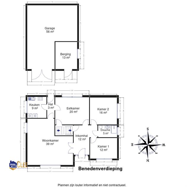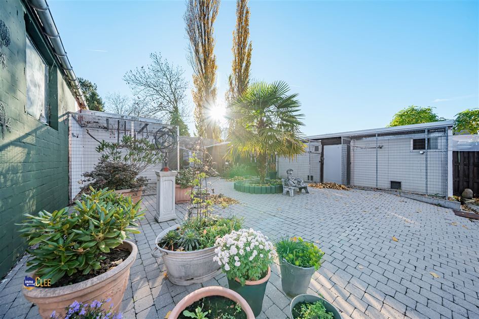 Buiten vinden we een ruime garage met berging, ideaal voor het stallen van een wagen, fietsen of materiaal.